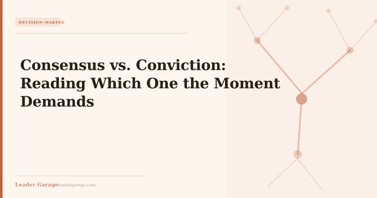 Conviction-based decisions — where the leader makes the call and communicates it clearly without seeking broad agreement — are appropriate in specific conditions that, once named, are learnable.